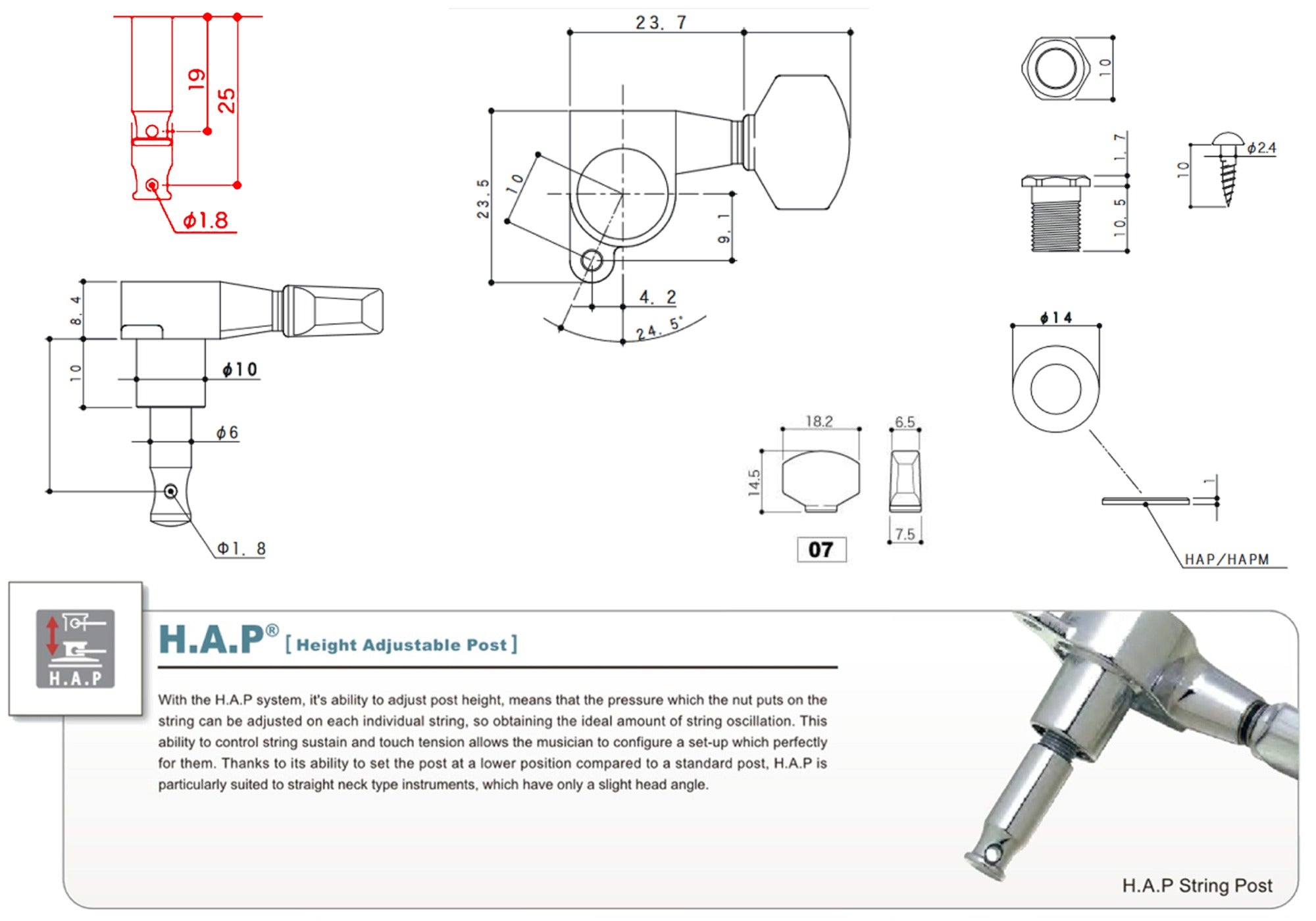 SG360 Short Post Tuners are also available (recommended using 2 Short Posts + 4 Standard for 6 inline Left or Right).