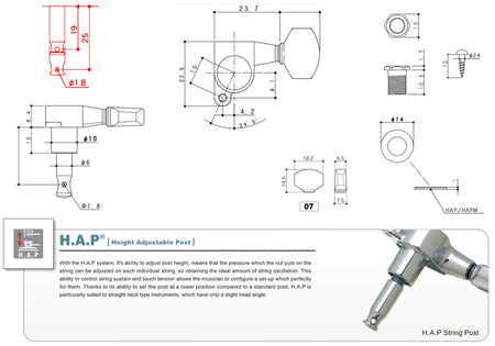 Gotoh SG360(B)07 H.A.P. Guitar Tuner with Standard Adjustable Post from 19 to 25mm, 1 Right* for Left-Hand (Black)