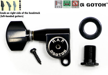 Gotoh SG360(B)07 H.A.P. Guitar Tuner with Short Adjustable Post from 17 to 21mm, 1 Right* for Left-Hand (Black)