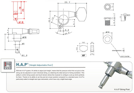 Gotoh SG360(G)07 H.A.P. Guitar Tuner with Standard Adjustable Post from 19 to 25mm, 1 Left (Gold)