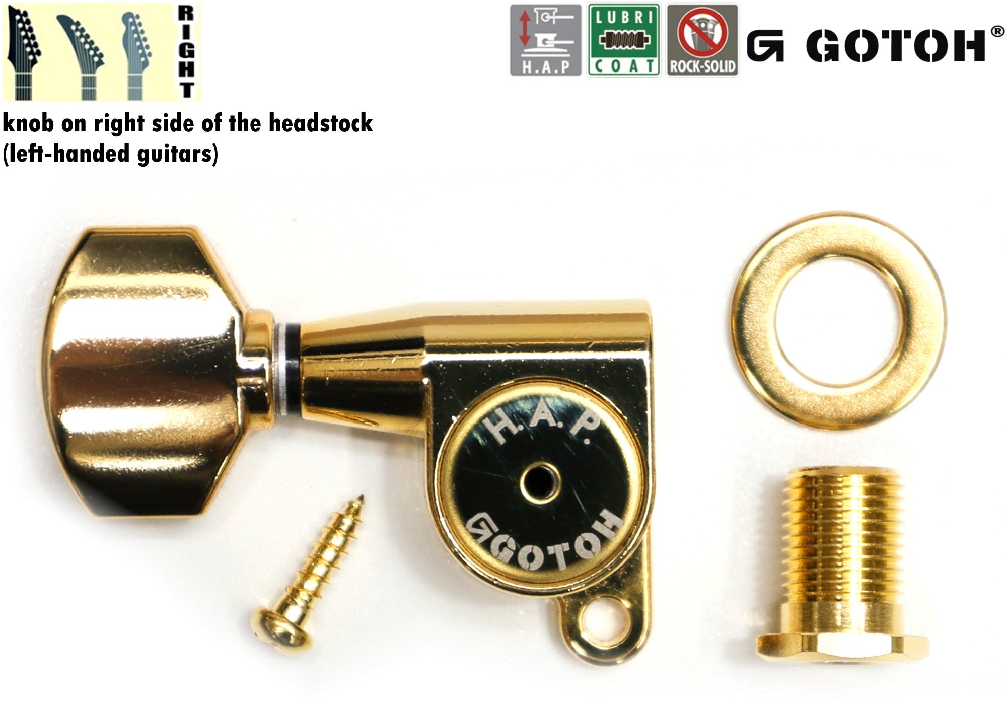 Gotoh SG360(G)07 H.A.P. Guitar Tuner with Standard Adjustable Post from 19 to 25mm, 1 Right* for Left-Hand (Gold)