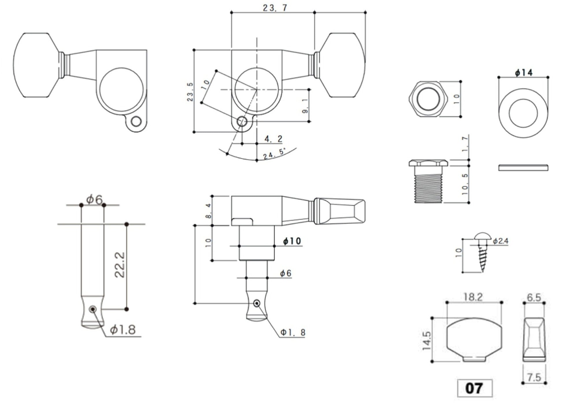Gotoh SG360(G)07 Tuners with Standard Post, 6 Left (Gold)