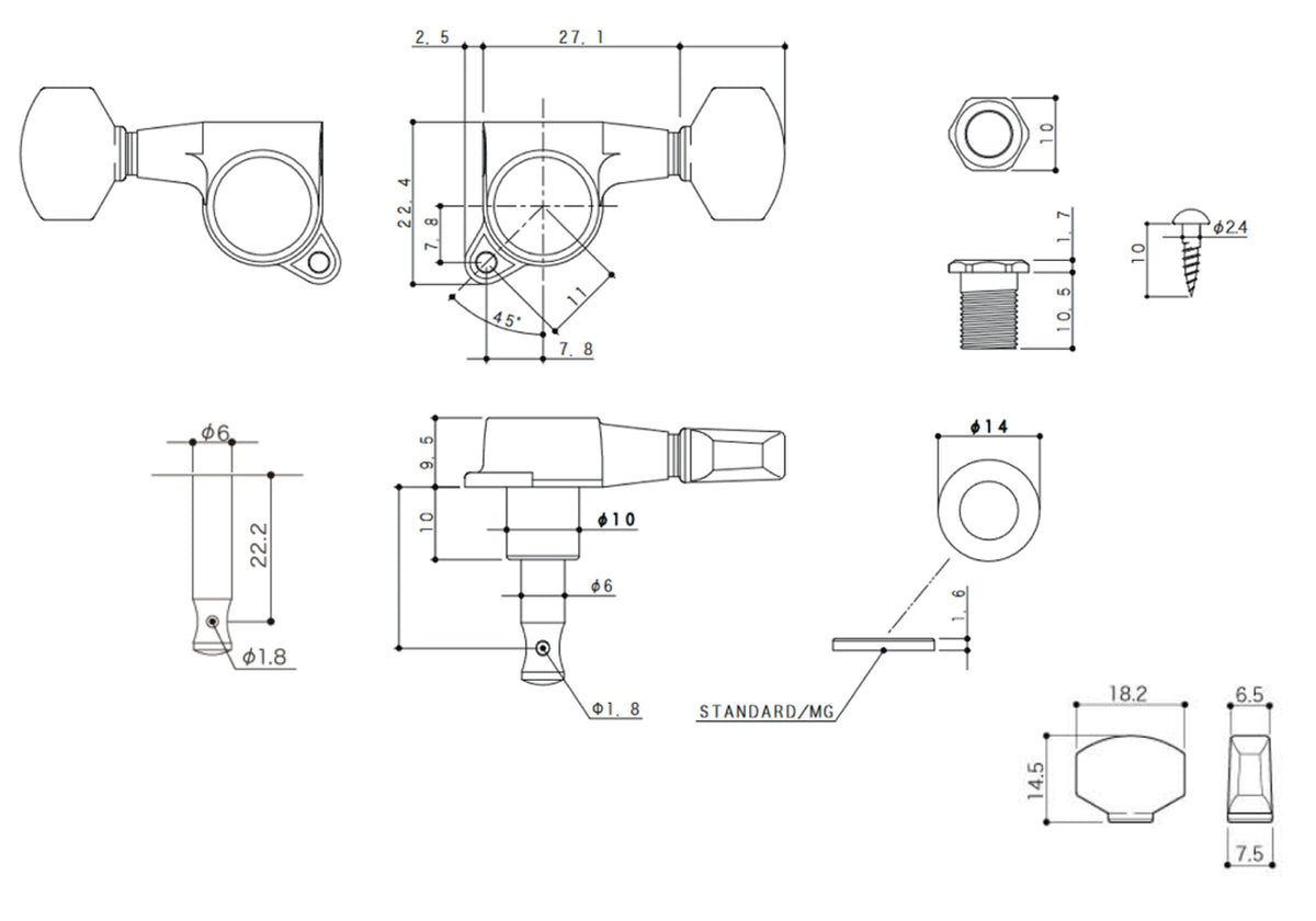 Gotoh SG381(B)07 Tuners with Standard Post, 6-Left (Black)