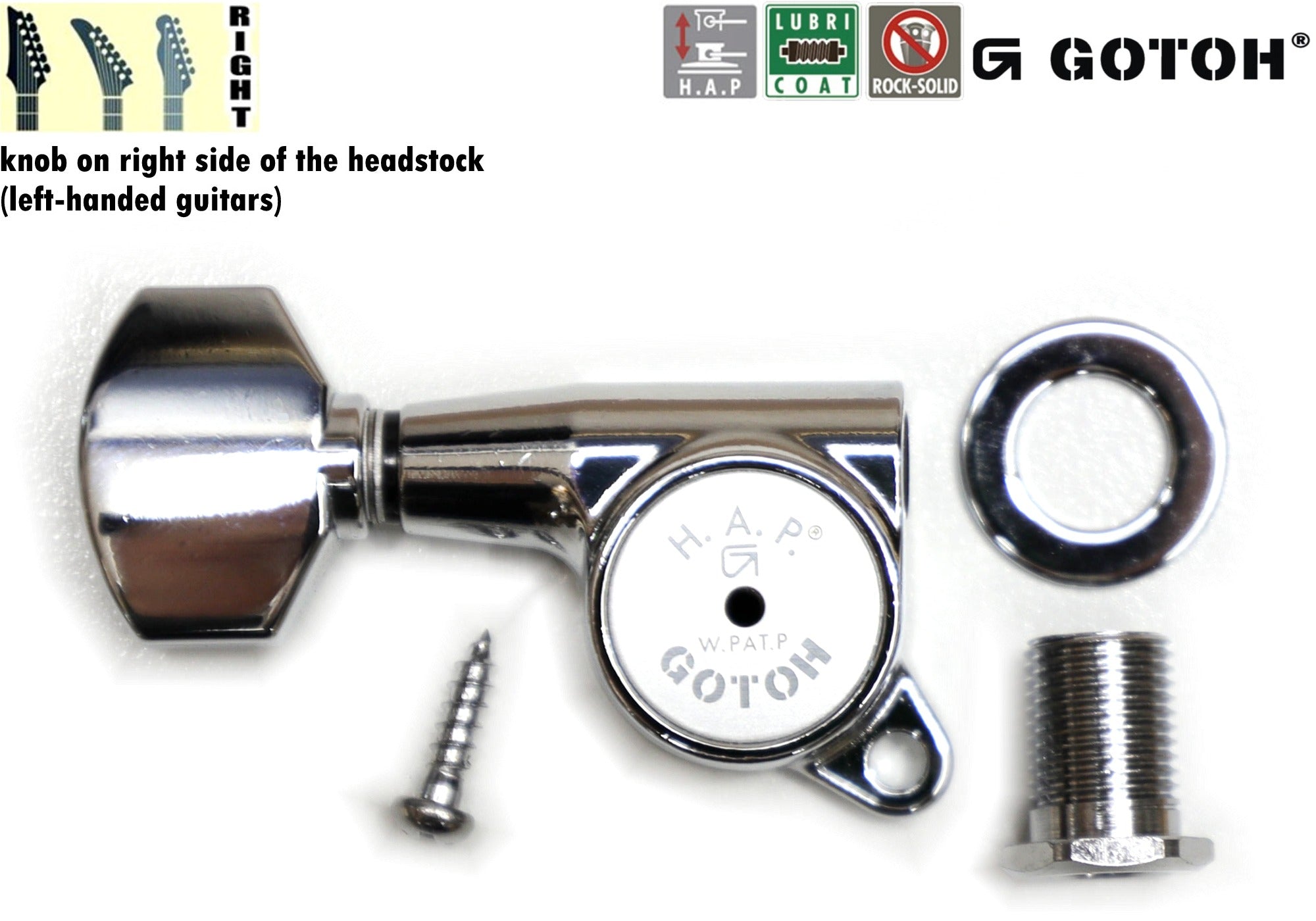 Gotoh SG381(C)07 H.A.P. Guitar Tuner with Short Adjustable Post from 17 to 21mm, 1 Right* for Left-Hand (Chrome)