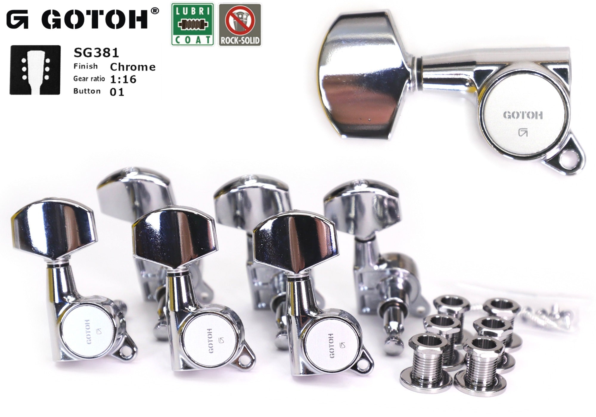 Set of six Gotoh SG381 sealed-gear tuners (3L+3R), Chrome finish, with Standard Post.