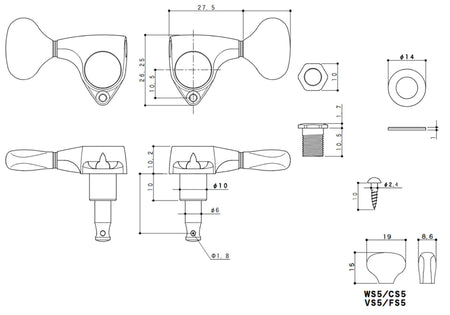 Gotoh SGV510(CK)CL5 Tuners with Standard Post, 3L+3R (Cosmo Black)