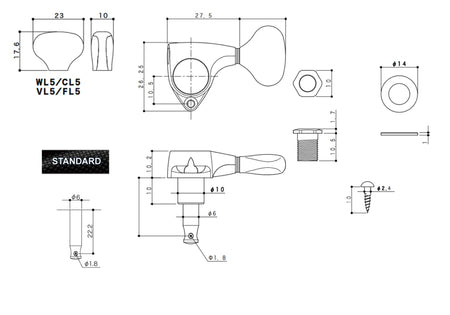 Gotoh SGV510Z(G)FL5 Tuners with Standard Post, 3L+3R (Gold)