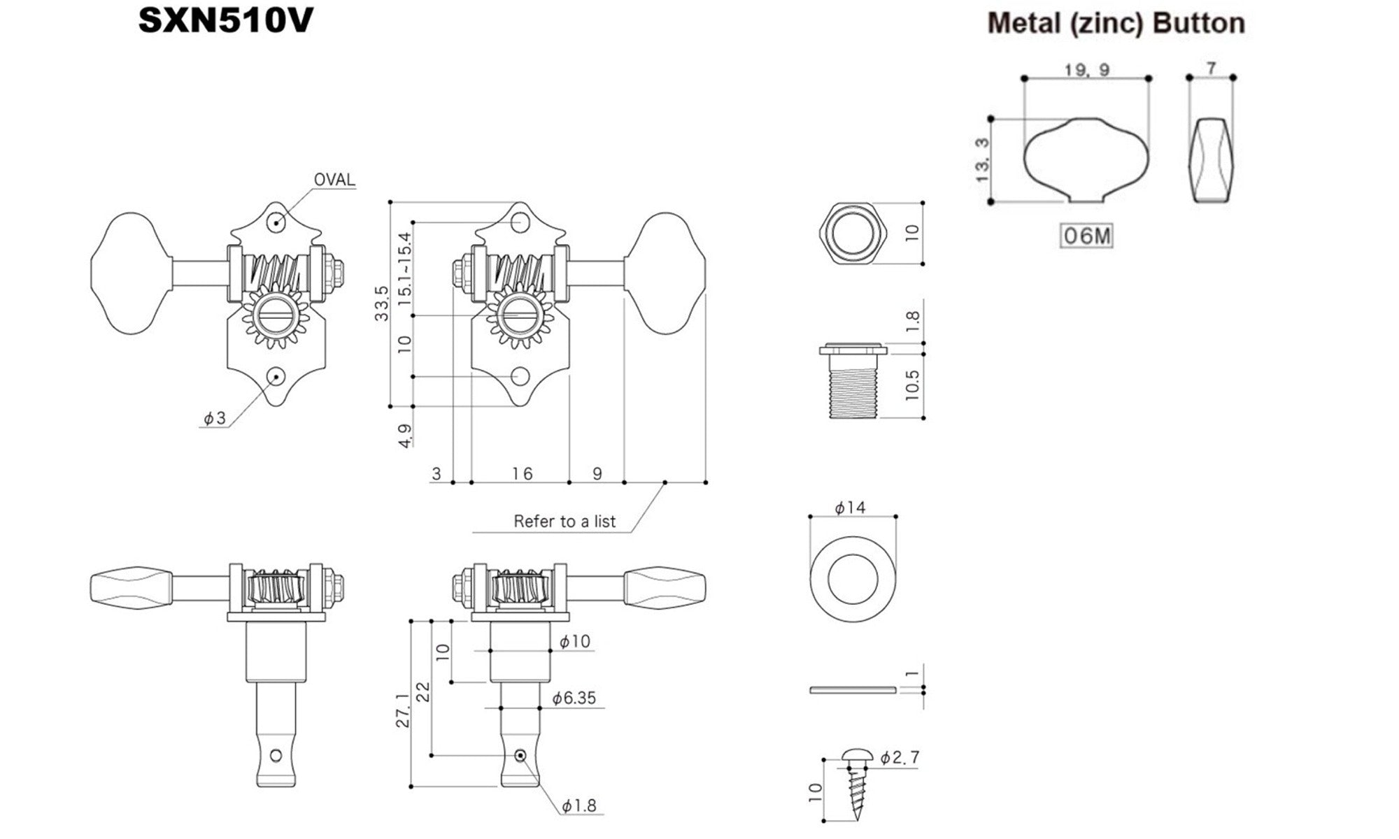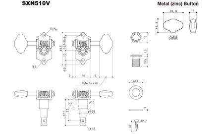 Gotoh SXN510V(N)06M Tuners with Standard Post, 3L+3R (Nickel)