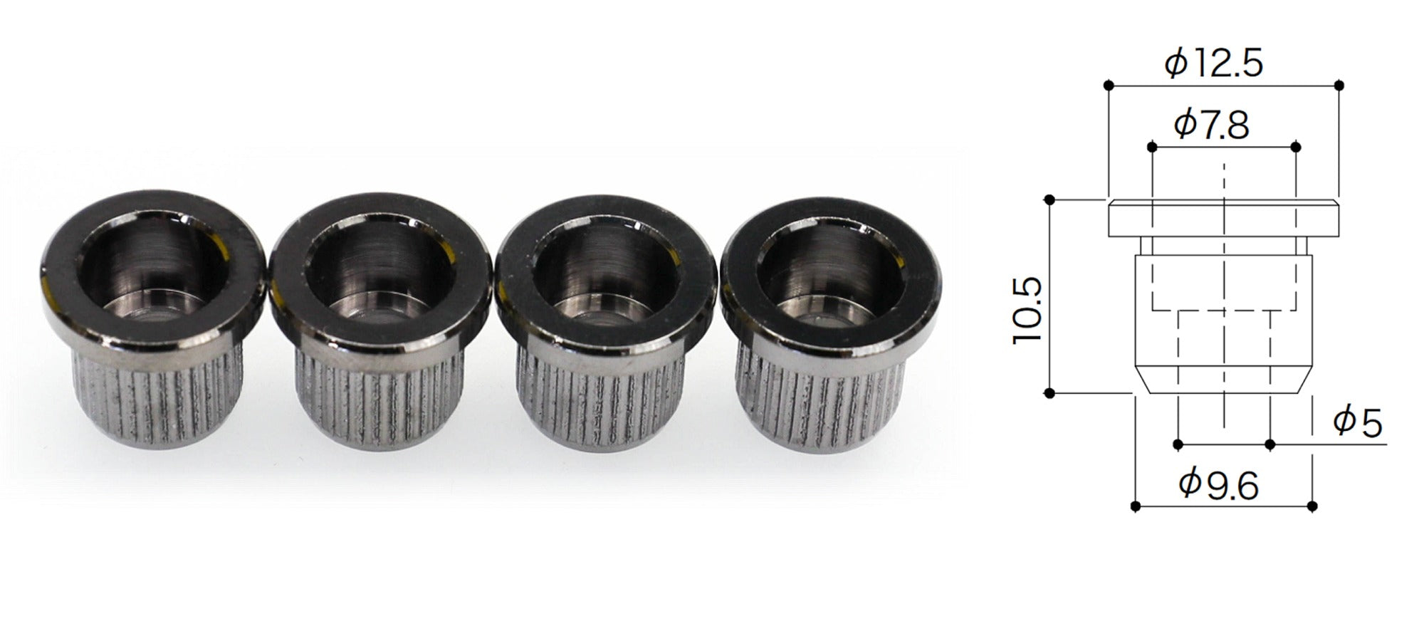 Gotoh TLB-2 Bass Guitar String Ferrules with top lip, set of 4 (choose finish)