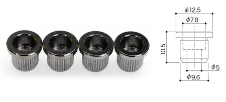 Set of 4 Bass Guitar String Ferrules with lip, for mounting the strings through the body.
