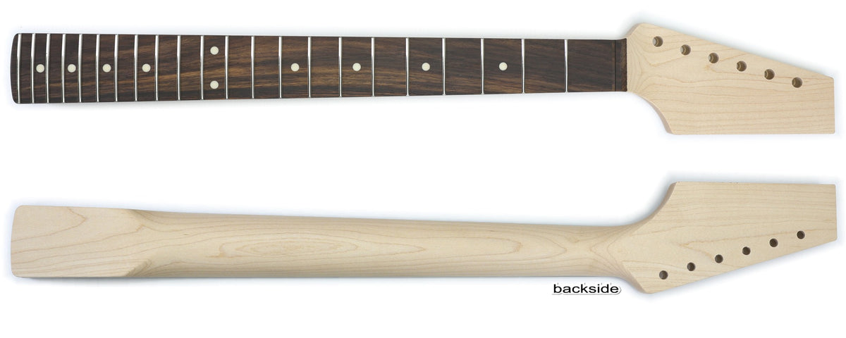 Shaped ST-type Guitar Neck, Rock Maple with Rosewood Fingerbaord, sanded, inlaid, fretted (22 Fret)