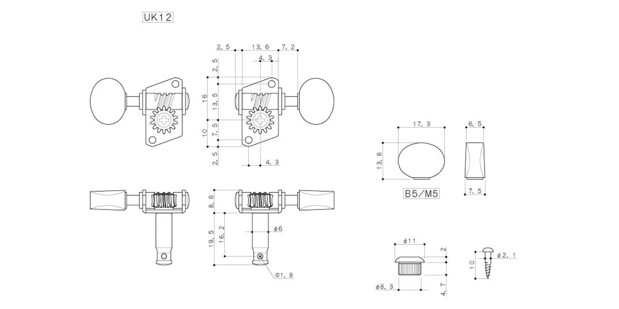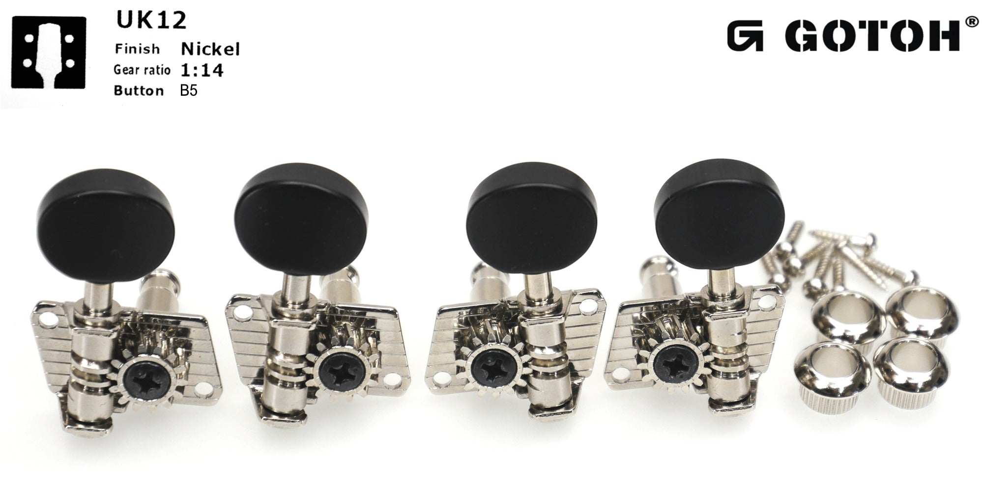 Gotoh UK12(N)B5 Tuners for Ukulele, 2L+2R (Nickel)