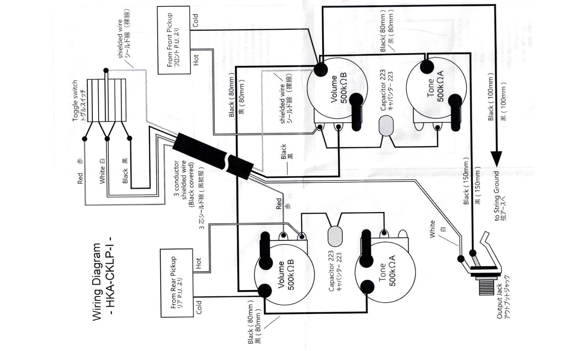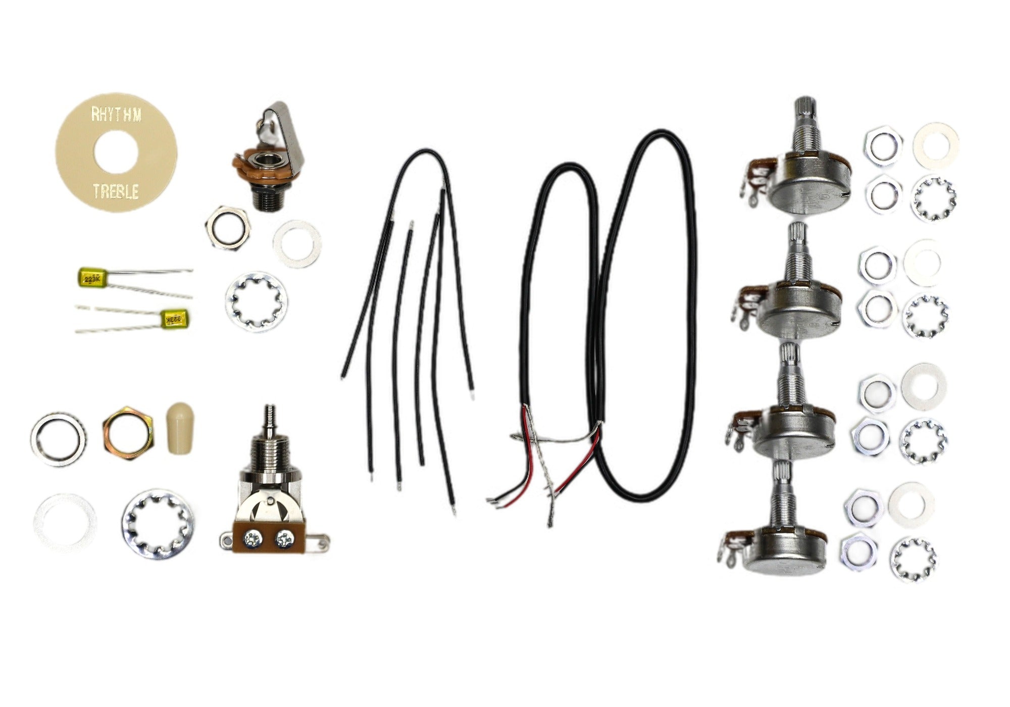 Wiring kit for Les Paul type Guitars with cream knob and cream toggle switch plate.